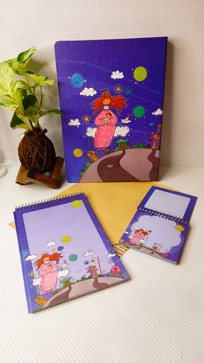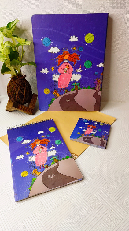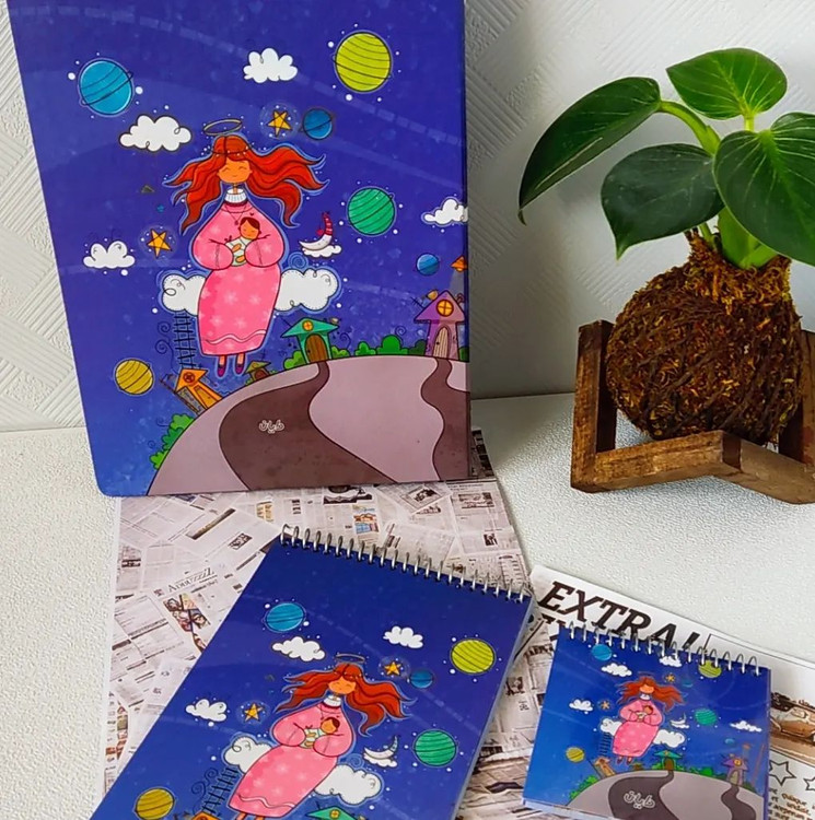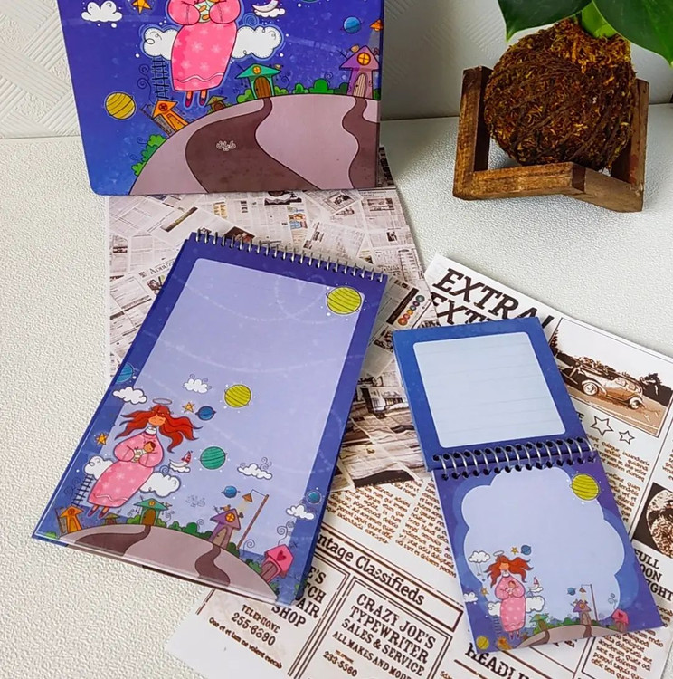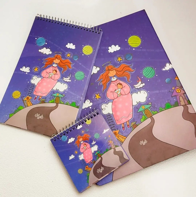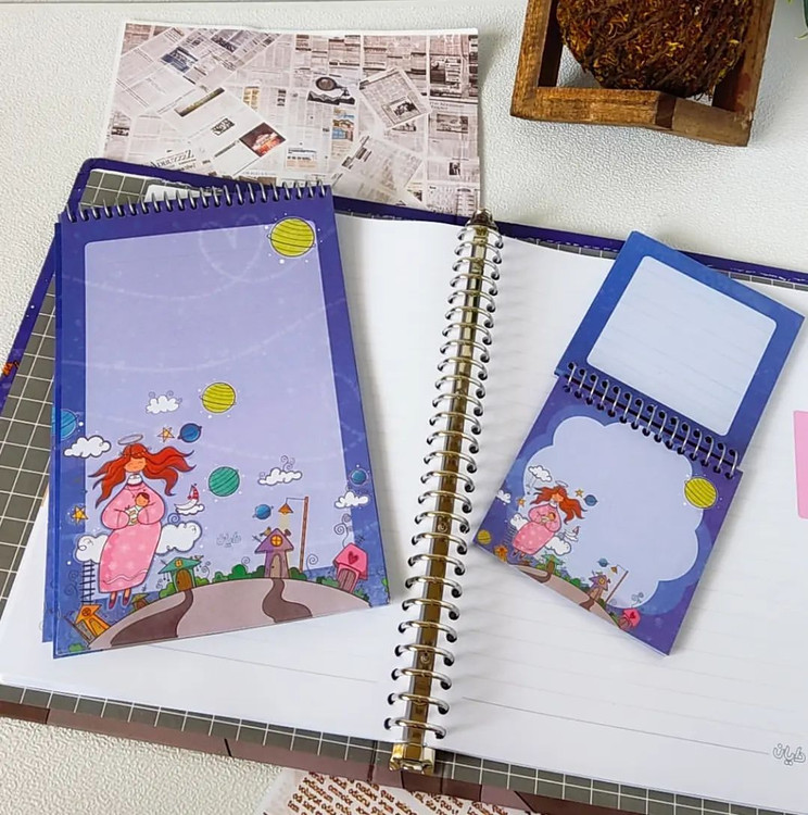 دفتر چه تمام رنگی سیمی ابعاد ۱۰×۱۰ . ۸۰ برگ یک صفحه طرحدار خط دار یک صفحه طرحدار بدون خط