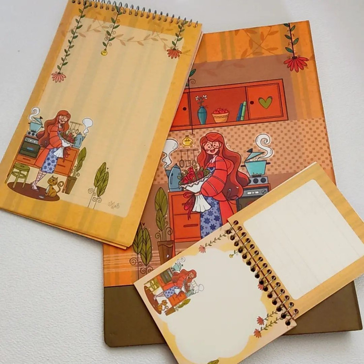 دفتر چه تمام رنگی سیمی ابعاد ۱۰×۱۰ ۸۰. برگ یک صفحه طرحدار خط دار یک صفحه طرحدار بدون خط