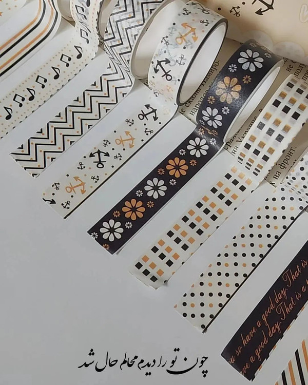 طول هر چسب ۲متر و عرض آن ۱/۵سانتی متر است کاربرد: تزیین دفتر، بولت ژورنال،اسکرپ بوک،تهیه ی کاردستی،بسته بندی هدیه و ...