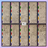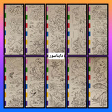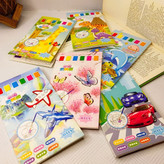 هر پک شامل ۱۰ برگ طرحدار، قلمو،،پالت آبرنگی ۶ رنگ در هر صفحه