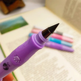 قسمتی را که توی دست میگیرید سیلیکونی است و طراحی خاصی داره .در واقع قسمت آسان گیر مثلثی داره که باعث سهولت در نوشتن و عدم خستگی انگشتان میشه و مانع از این میشه که مداد از دستتان سُر بخوره