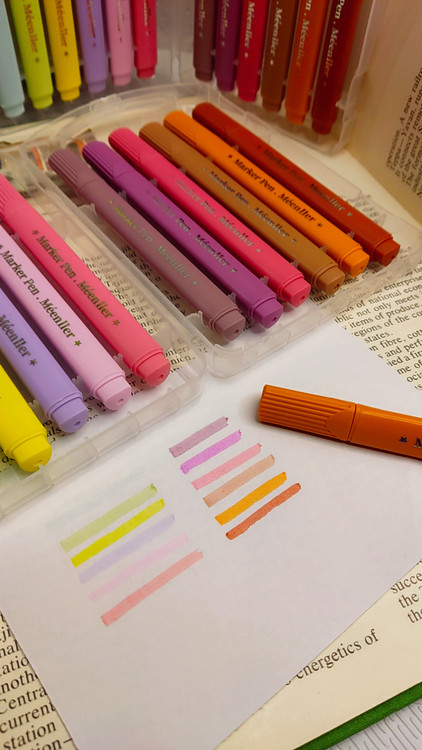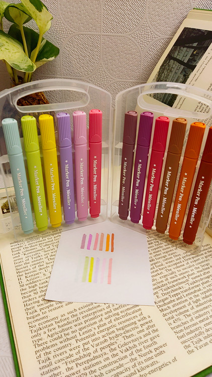 💭۶تا رنگ خیلی خیلی ملایم و کمرنگ داره برای وقتهایی که نیاز داری مطالبت را کمرنگ هایلایت کنی و ۶رنگ پررنگ داره برای کلمات کلیدی و مهم تر که میخوای بیشتر مشخص بشه