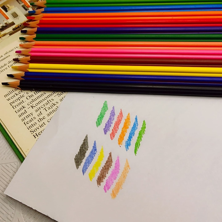 ۱۲رنگ در حد مدادرنگی های حرفه ای نرم نیستند اما خشک و بی کیفیت هم نیستند