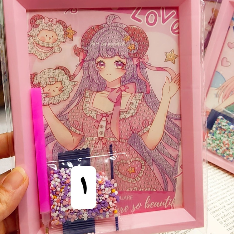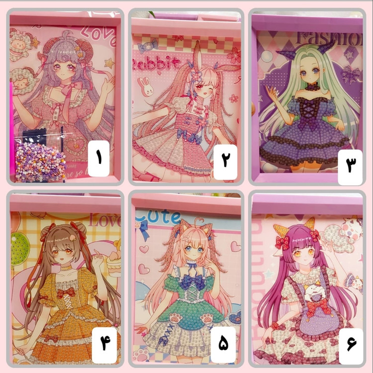 هر پک شامل قاب ،طرح خام ،نگین یا الماس،قلم،چسب