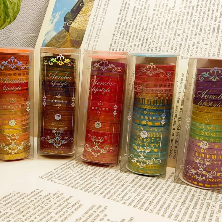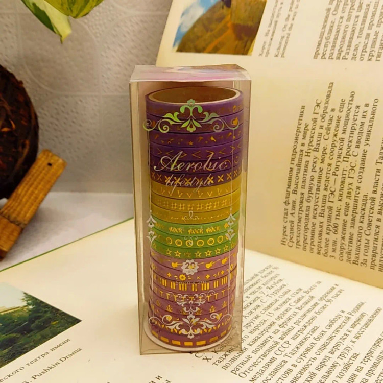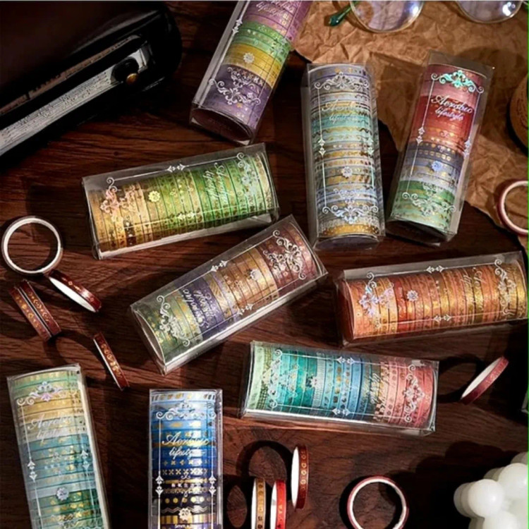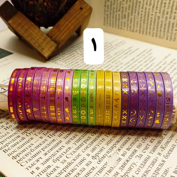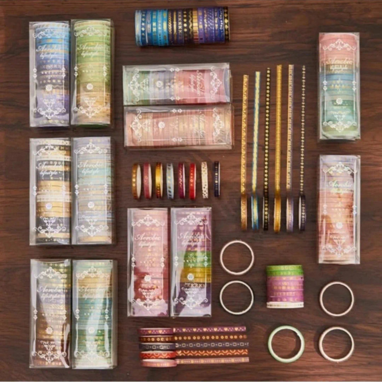 درخشش طلا روی کاغذ ست چسب واشی باریک با طلاکوبهای چشمنواز در ۶ طرح متفاوت و هماهنگ، برای اونهایی که از جزئیات ساده زیبایی می سازند! از تزیین ژورنال و پلنر گرفته تا بستهبندی هدیه یا ساخت کارتهای دستساز، این چسبهای خاص، یکعالمه ایده رو زنده میکنند. این چسبها با هر تکهشون یک لبخند میچسبونند به دل روزمرههات! مهم ترین بخش ماجرا؟ اینکه با این بینظیر، میتونی این ستهای جذاب رو مهمون میز کار یا قفسهی هنریت کنی! وقتی میگم بی نظیر یعنی ما کمتر از نصف بازار است.. خودم هم نمیدونم چرا.اما وقتی قیمتش را توی سایت ها دیدم تعجب کردم