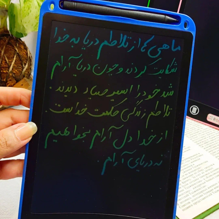 تبلت نقاشی یا کاغذ دیجیتال صفحه رنگی ۸/۵ اینچی باتری قابل تعویض صرفه جویی در مصرف کاغذ مناسب کودک و بزرگسال در ۵رنگ مناسب نقاشی و آموزش و یادداشت دارای دکمه ی پاککردن دارای دکمه ی قفل برای جلوگیری از پاکشدن مطالب هدیه ای مناسب برای کودکان در همه ی سنین