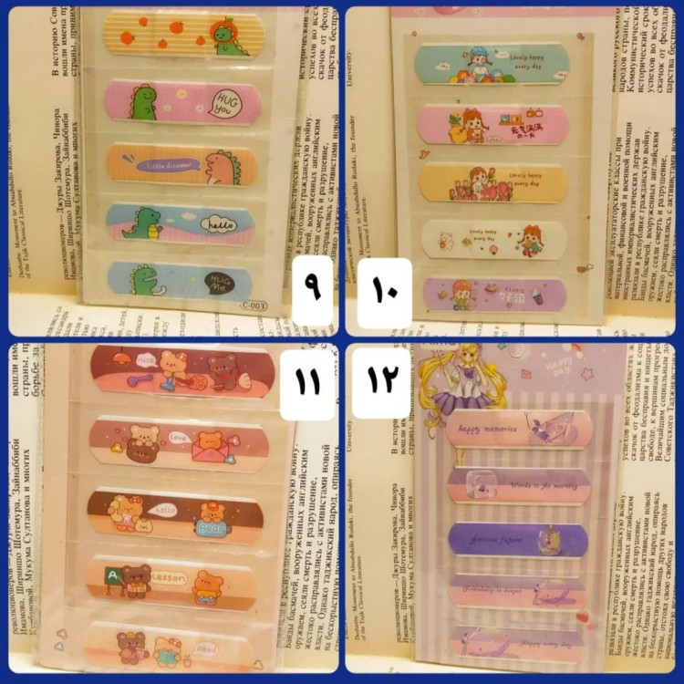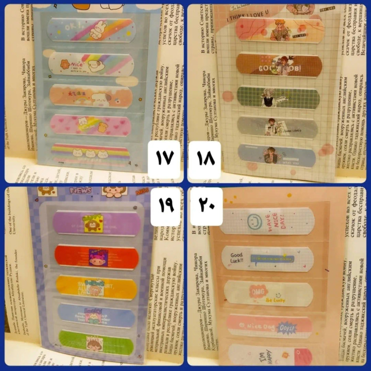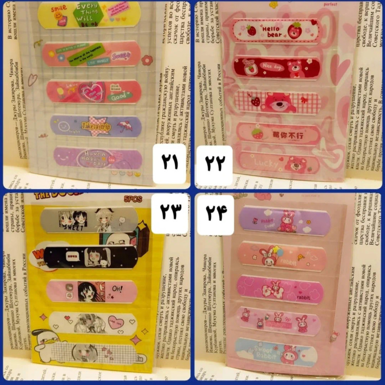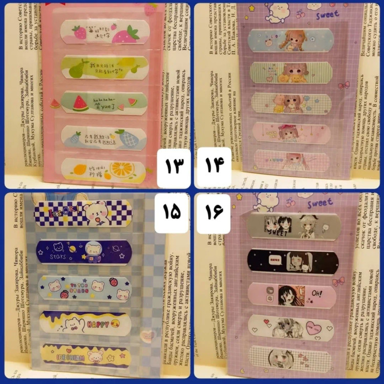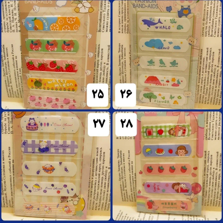 چسب زخم فانتزی جنس رویه ی چسب، پلیمری است و ضد آب. در ۲۸ طرح زیبا با این چسب های دلبر، بچه ها درد و زخم یادشون میره.. من که خودم همیشه چند تا از این چسب ها توی کیفم دارم .. بچه ها امیدوارم هیچ وقتی جسم و روحتون زخمی نشه و از این چسب زخم ها به عنوان دکوری استفاده کنید.. از این چسب زخم ها، علاوه بر زخم و بریدگی می تونید برای کارهای تزیینی هم استفاده کنید.. مثلا برای تزیین قاب گوشی،تبلت، درب یخچال،جامدادی های رومیزی
