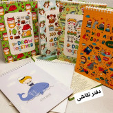 دفتر نقاشی ۴۰ برگ فنر دوبل. سیم از بالا .۵طرح زیبا داره ابعاد ۱۷×۲۴. طراحی خیلی خاصی داره.ابعاد و فنر از بالا بودنش باعث میشه بچه ها در همون نگاه اول عاشقش بشند..البته بین خودمون باشه مامان ها بیشتر عاشقش میشند.