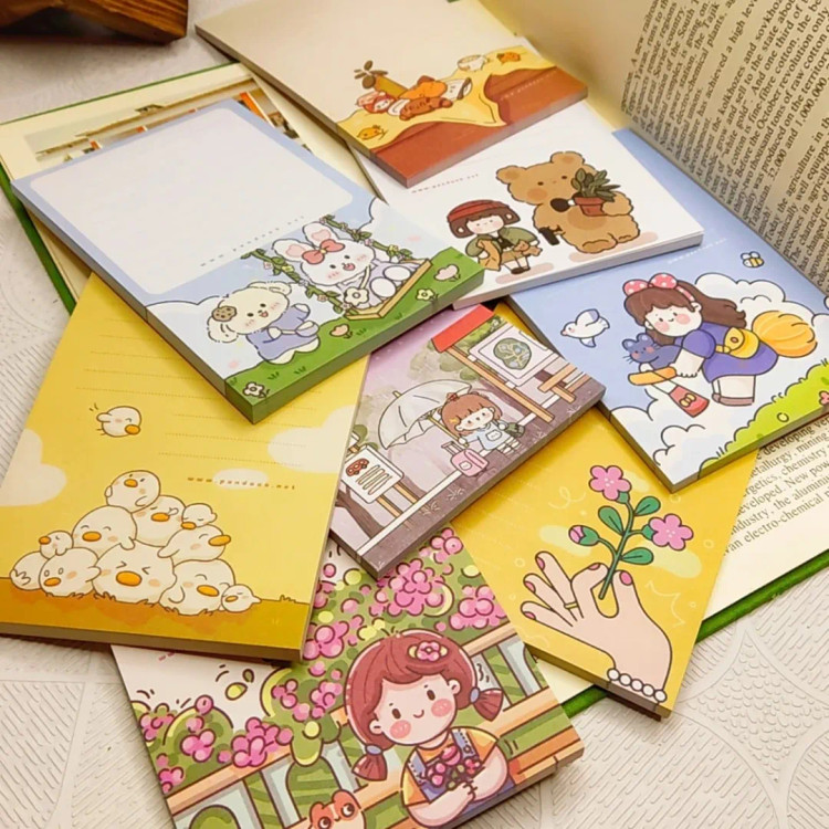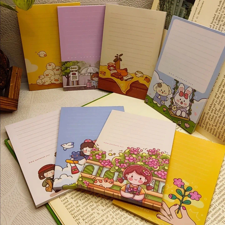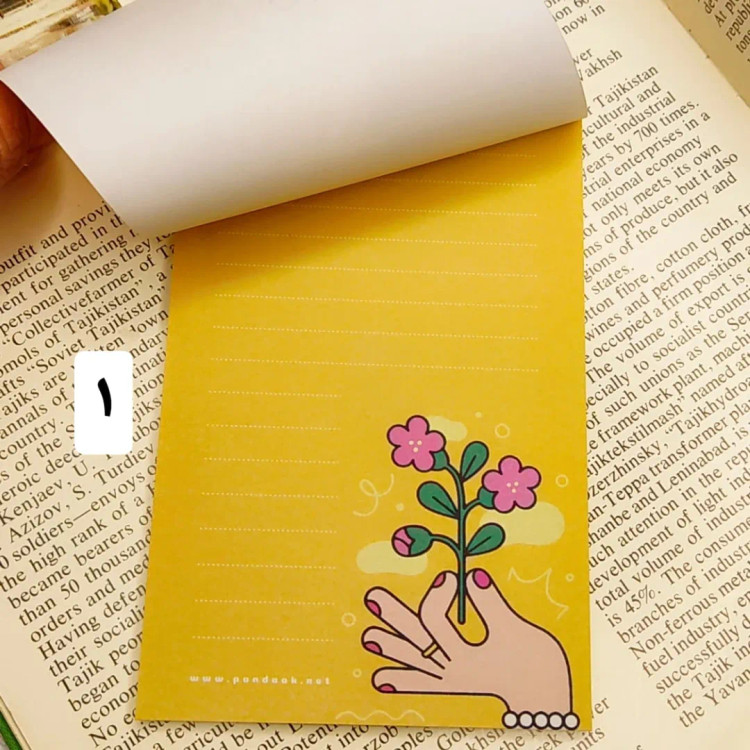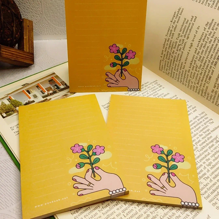 برگههایی که فقط برای نوشتن نیستن؛ برای ثبت لحظههای مهم، حرفهای قشنگ، و کارهایی که نباید فراموش بشن. ۵۰ برگ رنگی رنگی .۸ طرح بامزه و متفاوت .ابعاد: ۱۵×۱۰ سانتیمتر. ته چسب