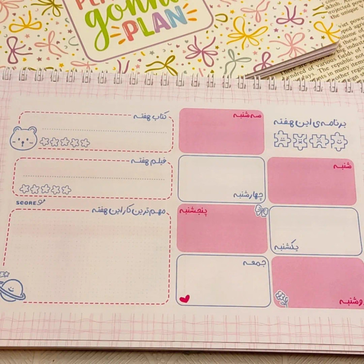 برنامهریزی یعنی احترام به زمان، آرامش ذهن و اولویت دادن به خود. در جهانی پر از مشغله و حواسپرتی، پلنر خوب فقط یک دفتر نیست؛ ابزاریست برای بازگرداندن کنترل زندگی به دستان ما. پلنرهای جدید ماهلین با طراحی هدفمند و ساختاری دقیق، برای ۲۴ هفته برنامهریزی شدهاند: نمای کلی هفتگی با بخشهایی برای کتاب و فیلم منتخب، و تمرکز بر مهمترین کار هفته برنامهریزی روزانه در چهار صفحهی کاربردی فضای اختصاصی برای یادداشتها، لیست خرید، مدیریت هزینه و پسانداز و البته جایی برای شکرگزاری و ثبت کارهای مهم—چیزی که در فرآیند رشد شخصی، نقشی بینظیر دارد. در ۴ طرح خاص، با ابعاد کاربردی ۱۴×۲۱ و کاغذ باکیفیت در ۹۶ برگ پلنری که فقط قرار نیست کارها را لیست کند؛ آمده تا سبک فکر کردن ما را تغییر دهد.