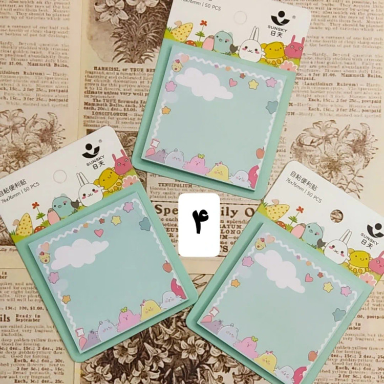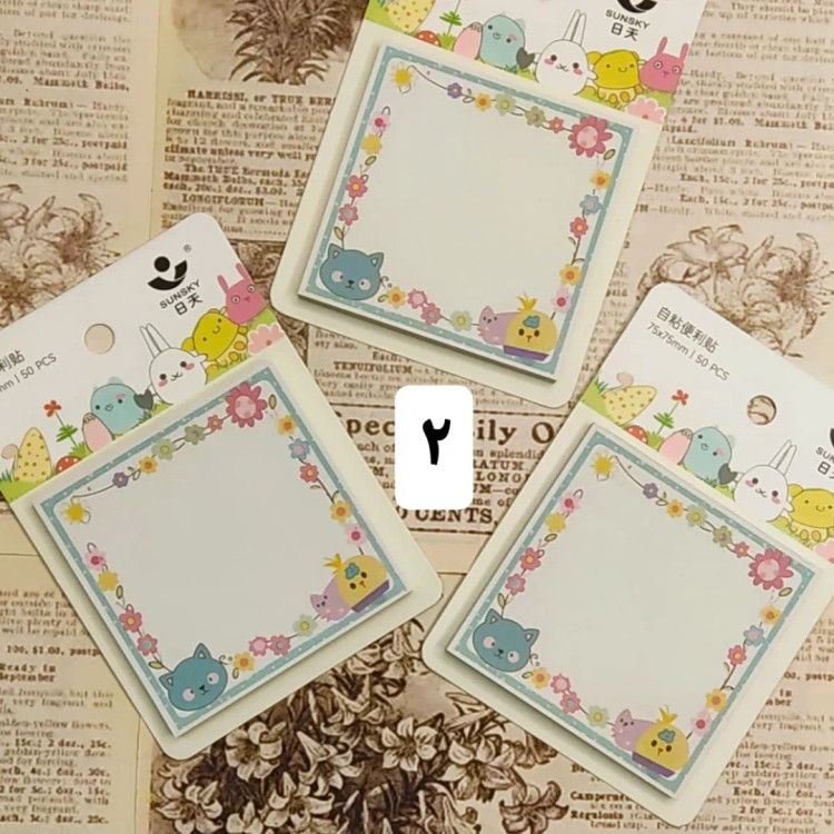استیک نوت فانتزی طرح حیوانات در ۴ طرح زیبا .چسبدار .۵۰ برگ .۷/۵×۷/۵ سانتی متر.