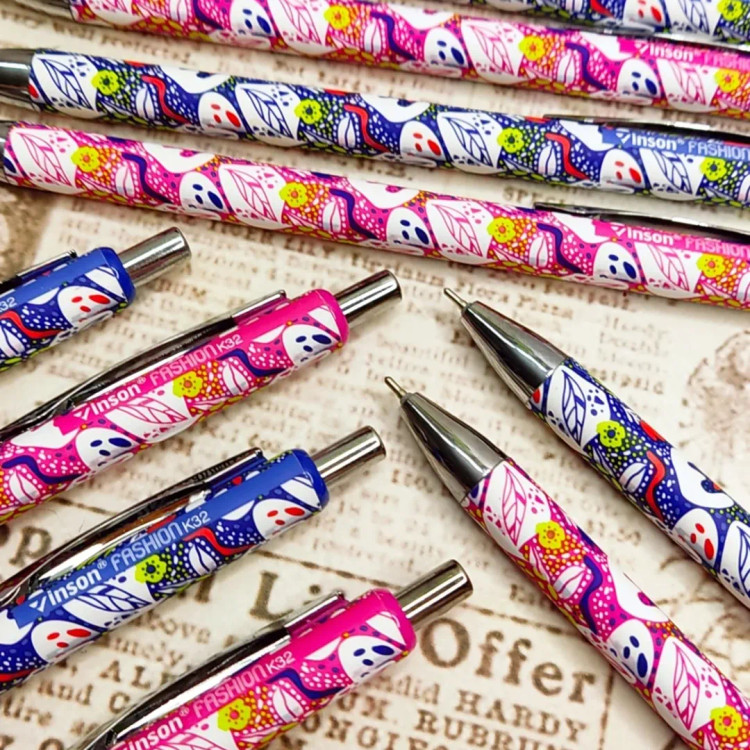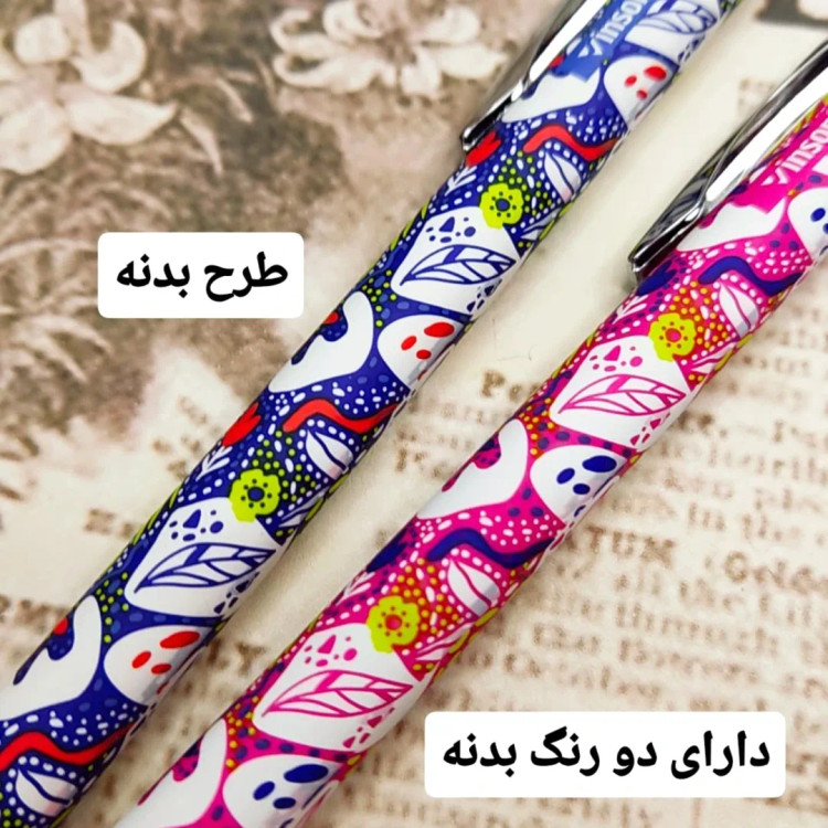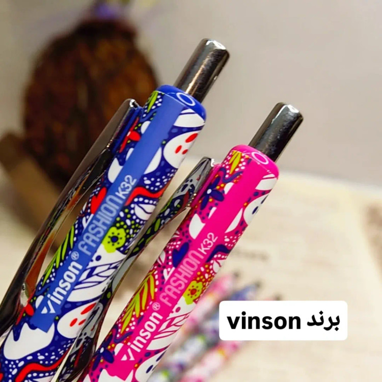 خودکار کلیکی آبی برند vinson دارای دو رنگ بدنه سبک و زیبا بسیار روان