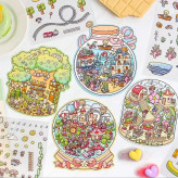 استیکر چیدمان مینیاتوری برچسبهایی برای پرورش تفکر خلاق ،تقویت مهارتهای حرکتی ظریف ،افزایش ادراک فضایی، تمرین تمرکز و توجه دنیای جادویی خودت رو بساز! ۱ عدد کارت مقوایی برای زمینه ۲ برگ برچسب ضد آب باکیفیت یک عالمه برچسب ریز و بامزه که میتونی با دقت روی الگو پیداشون کنی و بچسبونی نتیجه؟ یه تجربهی فوقالعاده لذتبخش، شبیه تماشای یه ویدیوی جذاب که دلت نمیخواد تموم بشه! با این مبلغ کم، کلی سرگرمی، آرامش و حس خوب نصیبت میشه؛ آخرش هم یه اثر مینیاتوری از خانه درختی و باغ گل و شهربازی و دریا داری که با هر نگاه، حالِ دلت روخوب میکنه. موجود در ۴ مدل متنوع