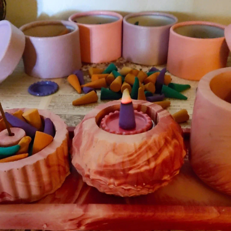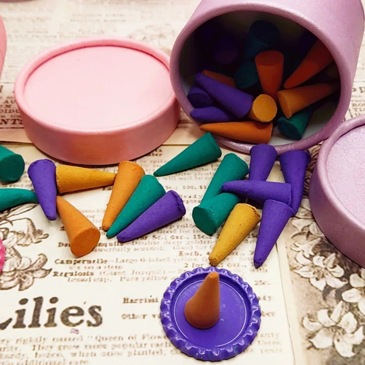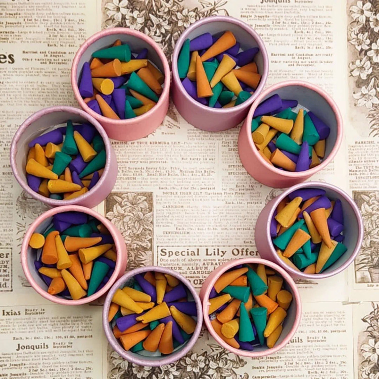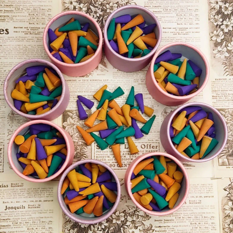 این عودهای مخروطی بوی خیلی خیلی ملایمی دارند با این بسته بندی زیبا برای هدیه دادن عالیه و حس خیلی خوبی داره نمیدونم بو را چه جور توضیح بدم.بوی چوب سوخته که یکم اسانس داره انگاری وسط جنگل آتیش روشن کردی توضیحاتم کامل بود؟؟ برای اونهایی که از بوی تند عود فراری هستند و عاشق طبیعتند عالیه باز هم تاکید میکنم، بوی خیلی کم و ملایمی داره هر بسته ترکیبی از اسانس مختلف است گل یاسمن و گل لاله و اسطوخودوس و یکیش را هم نمیدونم چیه هر بسته ۳۰ تا عود مخروطی داره
