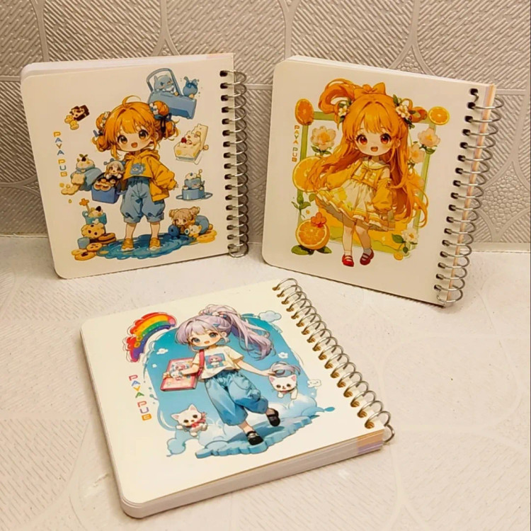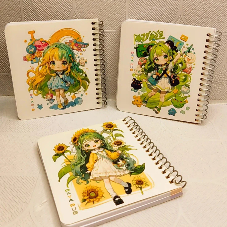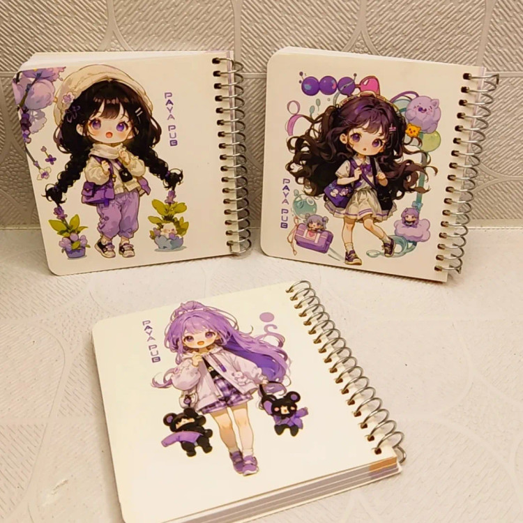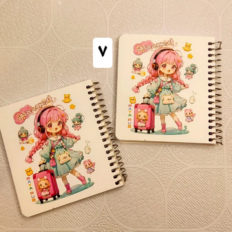 این دفترچهها رو قبلاً دیده بودم و همیشه دلم میخواست داشته باشمشون. دفترچه کم ندیدم، اما این یکی یه جور دیگهست… نمیدونم چرا، ولی طرح روی جلدش منو میبره به روزهای بچگیهام، همون روزهایی که پای انیمیشنهای دههی شصت مینشستیم و غرق دنیای رنگیشون میشدیم.انگار ترکیبی از حال و گذشتهست؛ یه پلی بین خاطره و امروز. این مجموعه در کل ۱۲ تا طرح داره و هر کدومشون دنیای خودشون رو دارن و من که دلباختهی همه ی طرح هاش شدم.