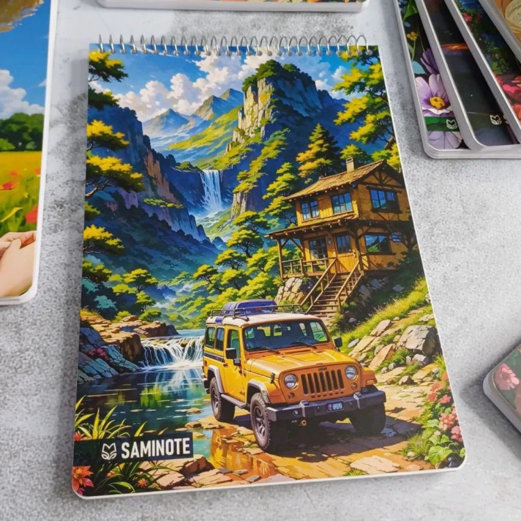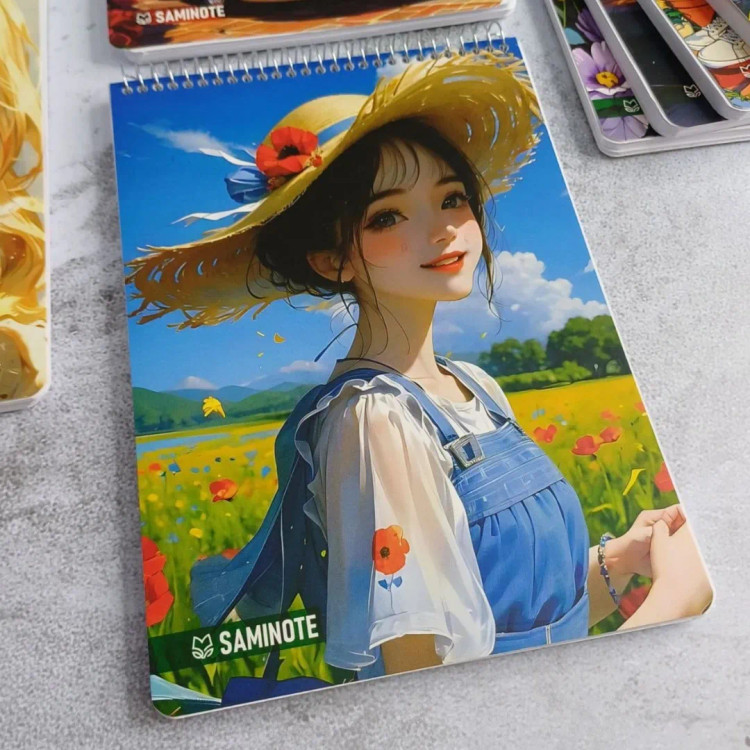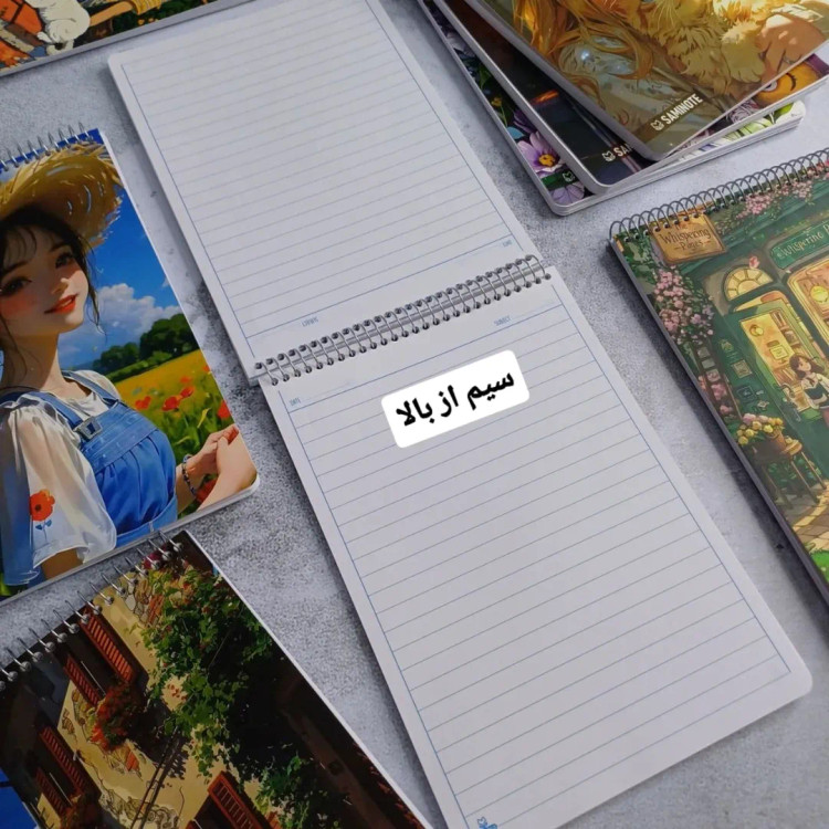 دفتر فانتزی سیم از بالا. ۸ تا طرح خوشگل و متنوع داره هم دخترونه، هم پسرونه مناسب همهی سنین خطوط آبی با فاصلهی استاندارد ۱ سانتیمتری ۸۰ برگ با کیفیت عالی و مهمتر از همه سیم از بالاست تا دست بچهها موقع نوشتن اذیت نشه! پس بچه ها دیگه بهونه نیارید مشق نمی نویسم فنر دفتر دستم را اذیت میکنه.. خداییش ببینید چه قدر طرح هاش دلبره