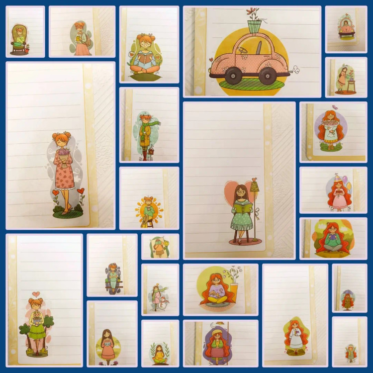 دفترهای حاشیه دار سایز A5 در ۹ طرح زیبا ۵۰ برگ سیمی فوق العاده زیبا و با کیفیت یه دفتر خاص با یه عالمه حس خوب که هر کسی ببینه عاشقش میشه تفاوتش با سایر دفترهای حاشیه دار این است که هر صفحه حاشیه ای متفاوت داره.یعنی چهل و هشت طرح حاشیه داره و هر طرح دو بار تکرار شده. طرح حاشیه ها را توی عکس ها میتونید ببینید.