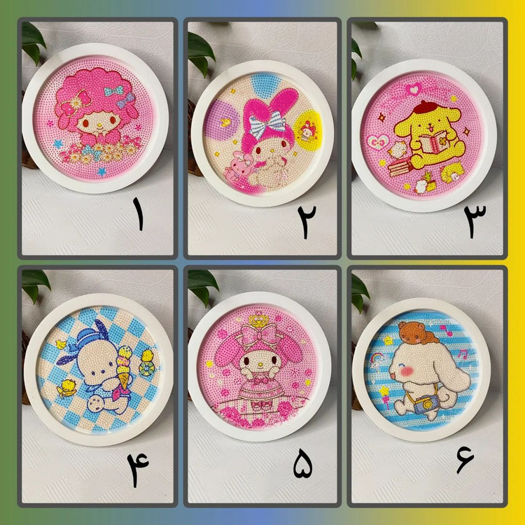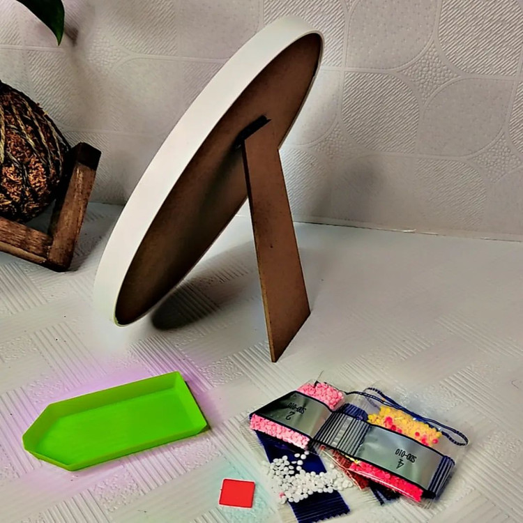 هر پک شامل طرح خام،قاب رومیزی پایه دار،نگین یا همان الماس،قلم مخصوص،چسب،ظرف