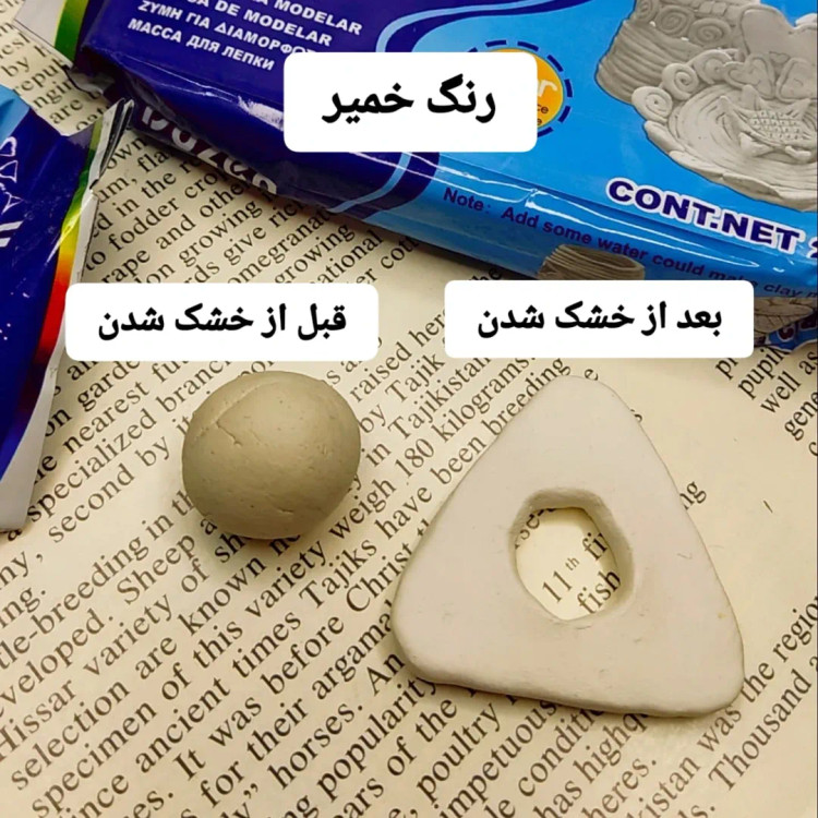 خمیر هوا خشک یا خمیر مجسمه سازی این خمیر هواخشک رو به دخترم آوردم… اما از همون روز، دیگه دخترمو فقط موقع شام و ناهار میبینم رفته تو اتاقش و غرق دنیای ساختنیها شده! پس قبل از خرید، خودتون رو برای ناپدید شدن بچه هاتون آماده کنید حالا خمیر هوا خشک چیه؟ مادهای انعطافپذیر و نرم که در تماس با هوا به مرور زمان خشک و سخت میشه و نیازی به کوره یا فر نداره. این خمیر برای ساخت انواع مجسمه، عروسک، زیورآلات، و تزئینات کاربرد داره. پس از خشک شدن، آثار را می تونید رنگآمیزی، پوششدهی (پتینه) و یا ضدآب کنید. وزنش هم ۲۵۰ گرم است مارک Dozen