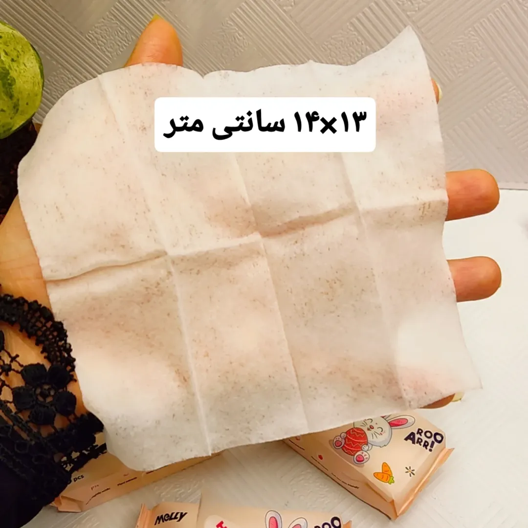 ابعاد هر دستمال ۱۳×۱۴ سانتی متر است