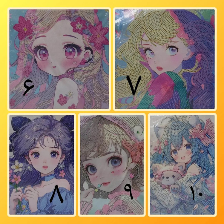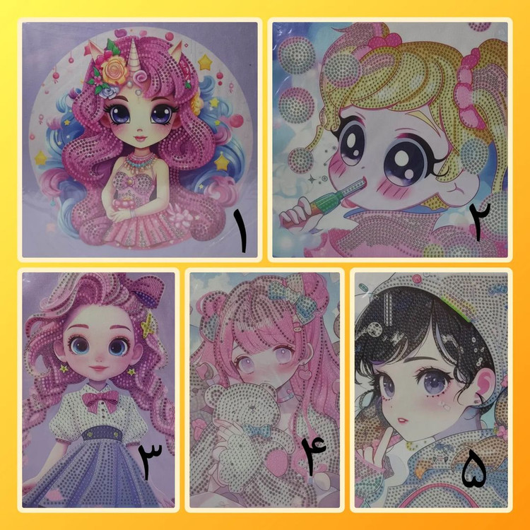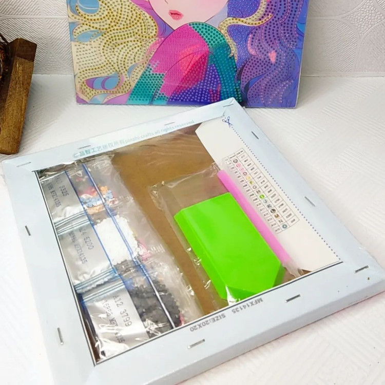 هر پک شامل طرح خام،نگین یا همان الماس،قلم مخصوص،چسب،ظرف