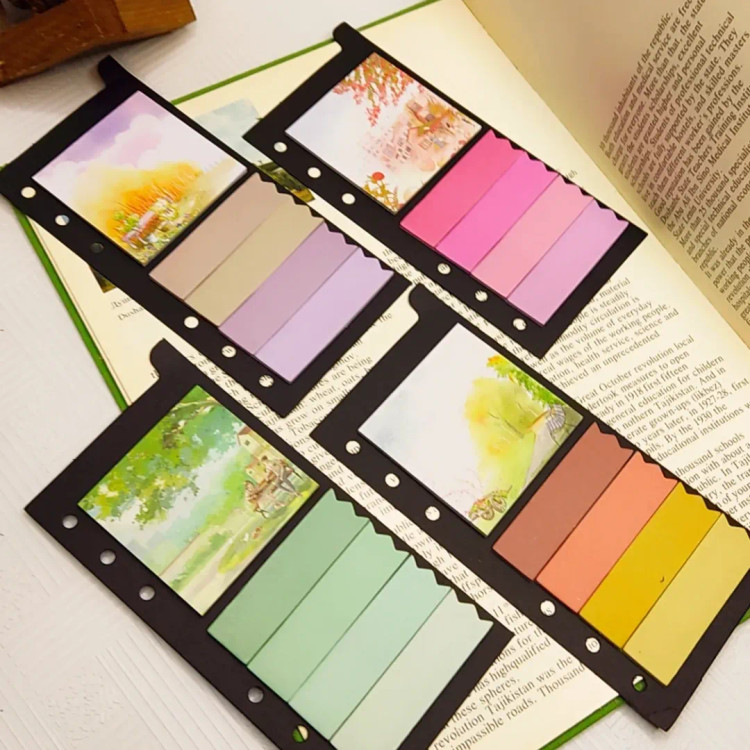 "توی کلاسورت کنار برگههای سفیدت، جای یکی از اینها خالیه. استیک نوتهای با طرح طبیعت و ایندکسهای طیف رنگی، همه توی یک قاب جمع شدند و ترکیب زیبا و خاصی ساختند که نمیتونی ازش بگذری."