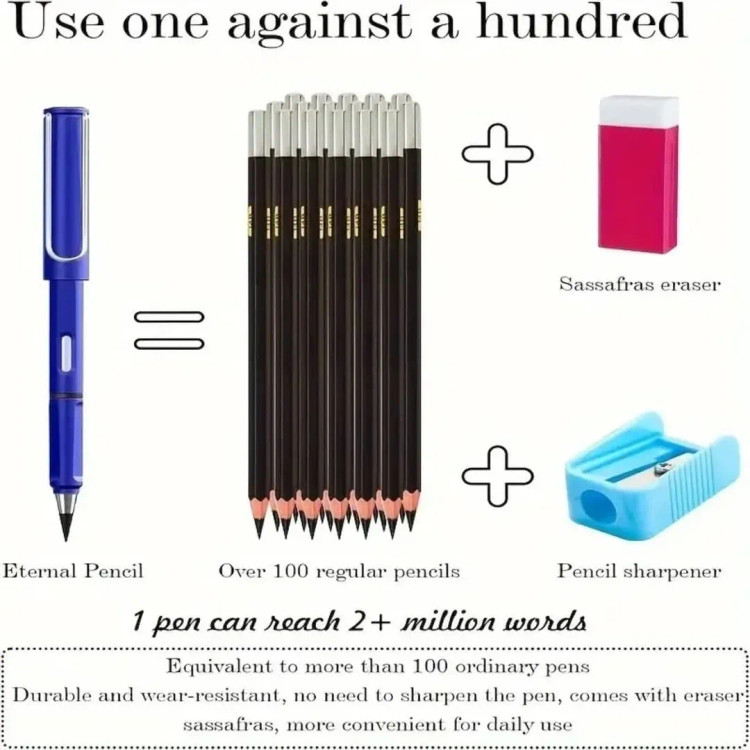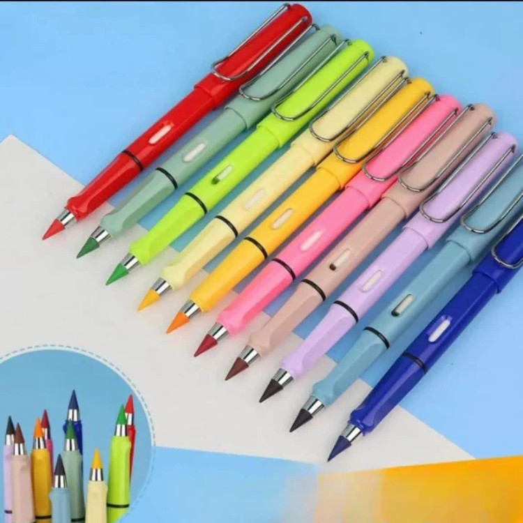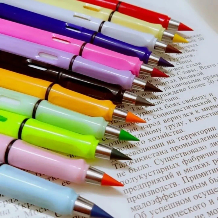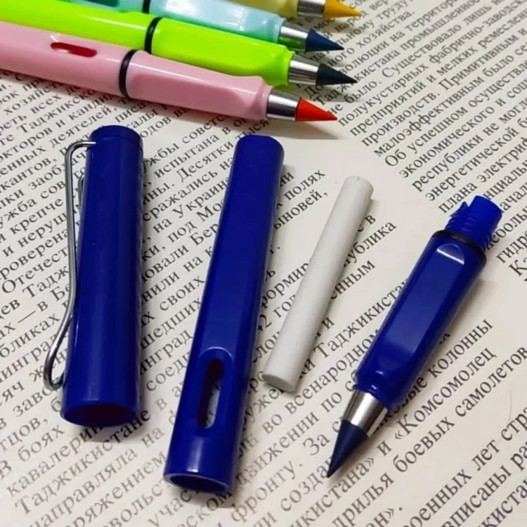نوک این مدادها از یک نوع آلیاژ است که از ترکیب چند فلز ساخته شده و بر روی کاغذ اثری مشابه مداد به جا میزاره که قابلیت پاک شدن داره.نیازی به تراشیدن ندارد. دست وکاغذ را کثیف نمیکنه داخلش یه پاک کن استوانه ای داره.