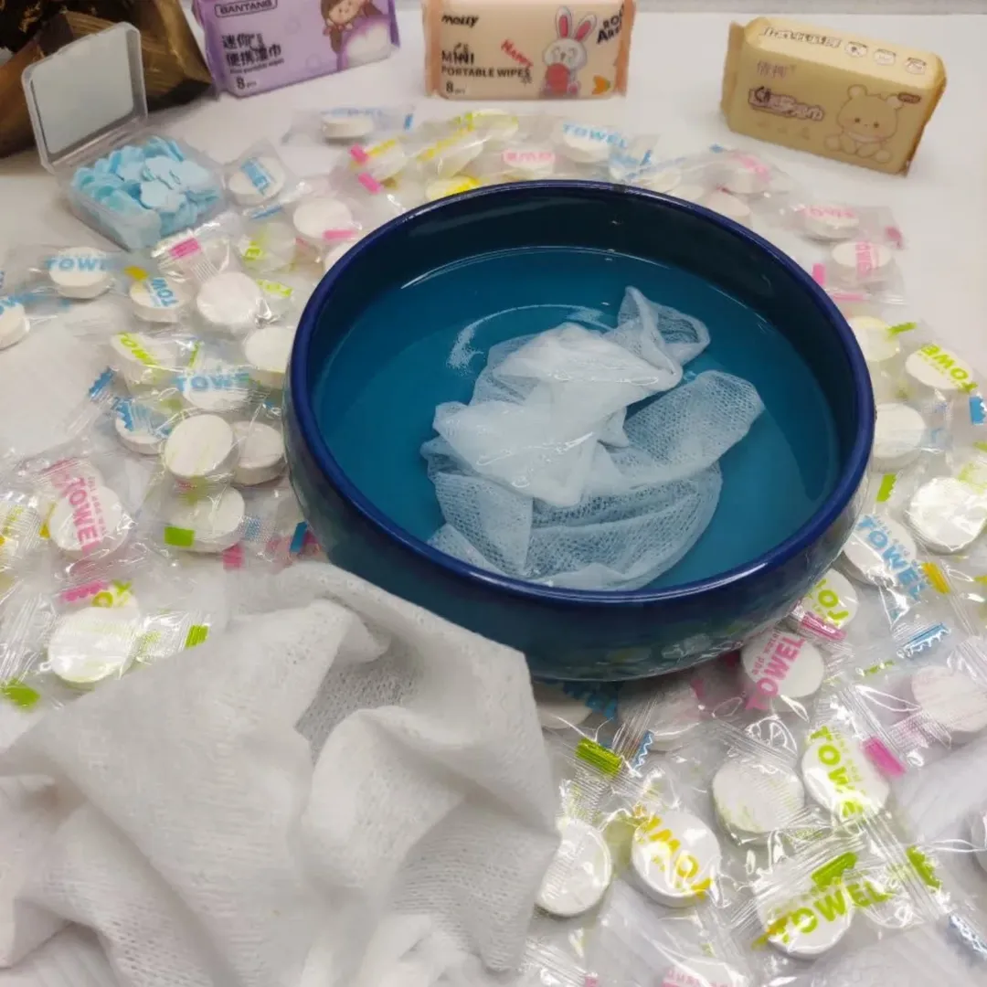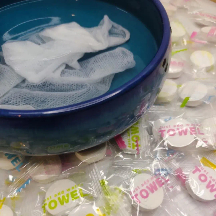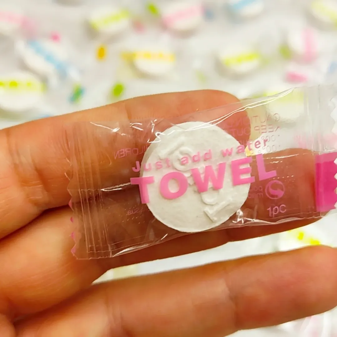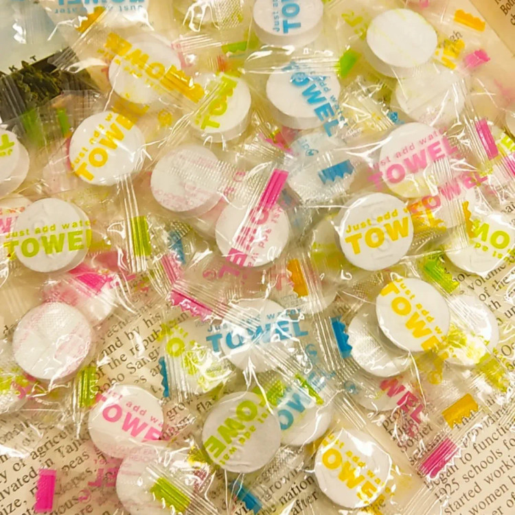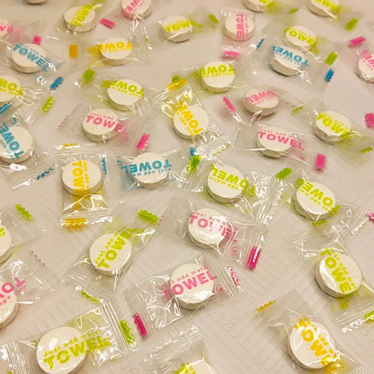 دستمال پارچه ای به شکل آبنبات که تنها در تماس با آب از حالت فشرده خارج و باز و قابل استفاده می شود. ابعاد دستمال پس از باز شدن حدودا ۱۵×۲۵ سانتی متر است و می تواند برای تمیز کردن سطح پوست، خنک کردن پوست در برابر گرمای هوا یا تمیز کردن سطوح و وسایل استفاده شود. به لطف ابعاد کوچک قابلیت حمل آسان در جیب، کیف پول و داخل خودرو را دارد.
