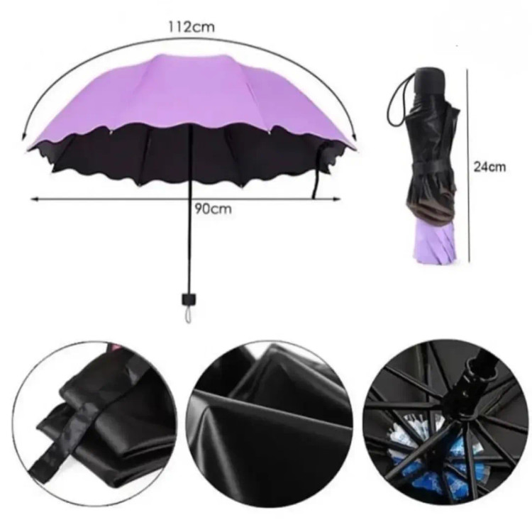 😍چترهای جادویی 💞در حالت معمولی ساده هستند اما وقتی بارون میاد طرح گل بابونه برجسته ظاهر میشه 😍 💞در ۶ رنگ 💞۸ فنر 💞ضد باد 💞سبک 💞ضد uv 💞تاشو هستند ودر حالت جمع شده بسیار کمجا هستند و به راحتی داخل کیف جا میشوند. حدود ۲۵ سانتی متر 💞دور دوخت دالبر 💞اتومات نیستند و دستی هستند.