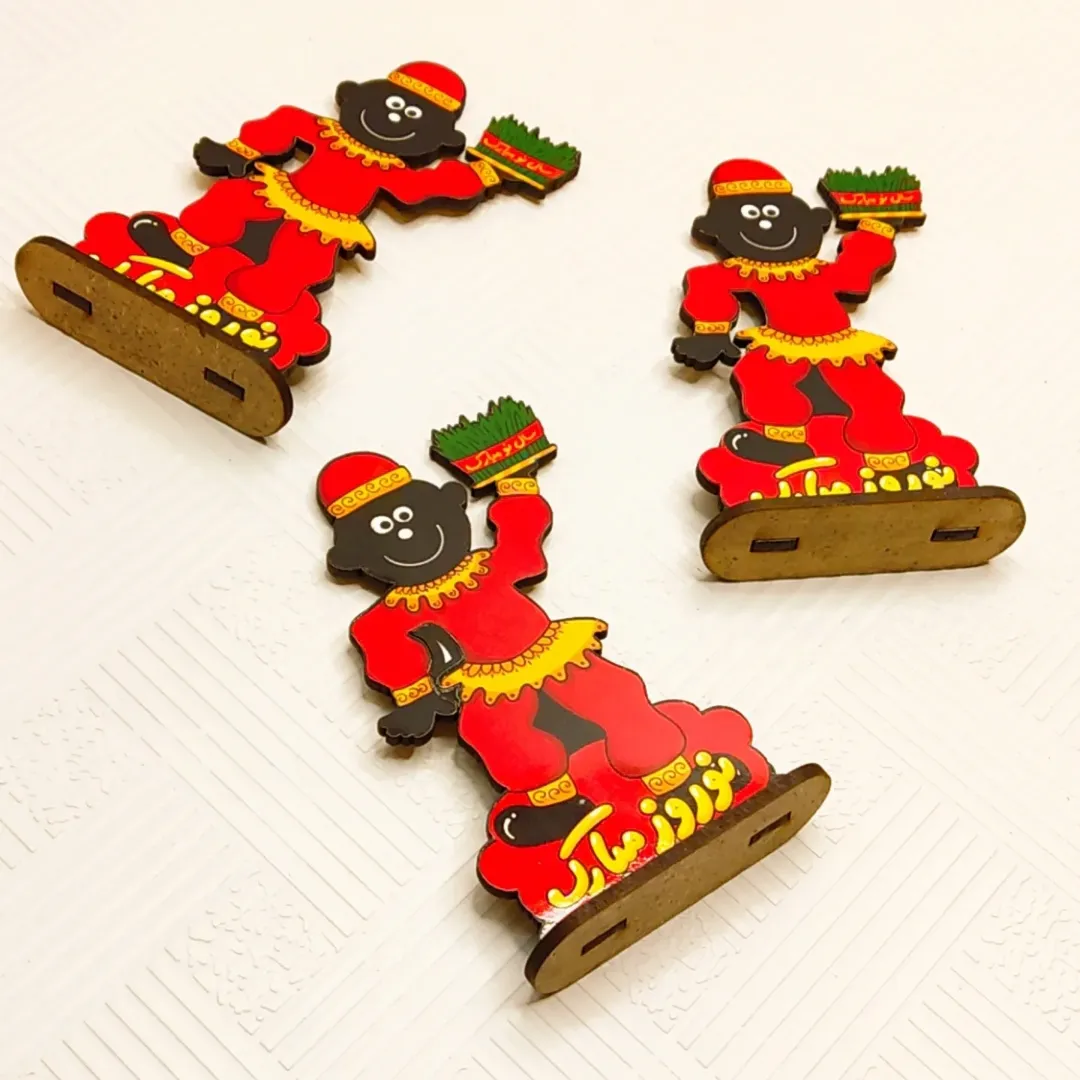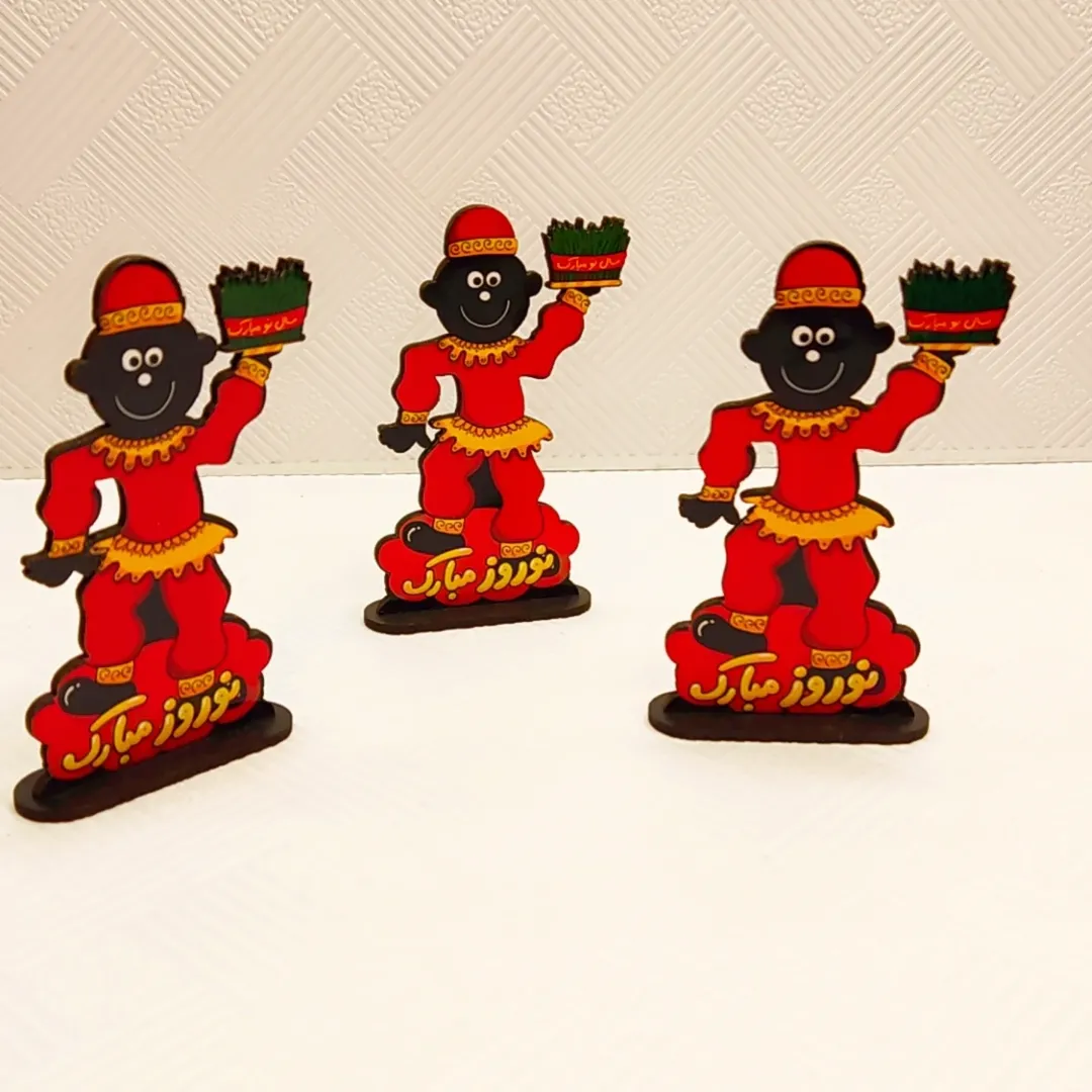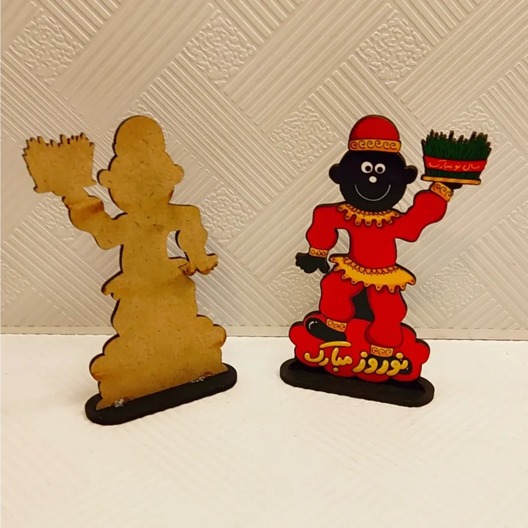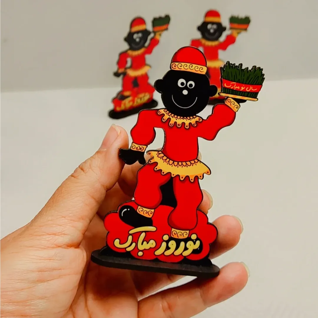 استند چوبی با طراحی حاجی فیروز مناسب برای نوروز. چوب ۳ میل ابعاد تقریبی ۵×۱۰