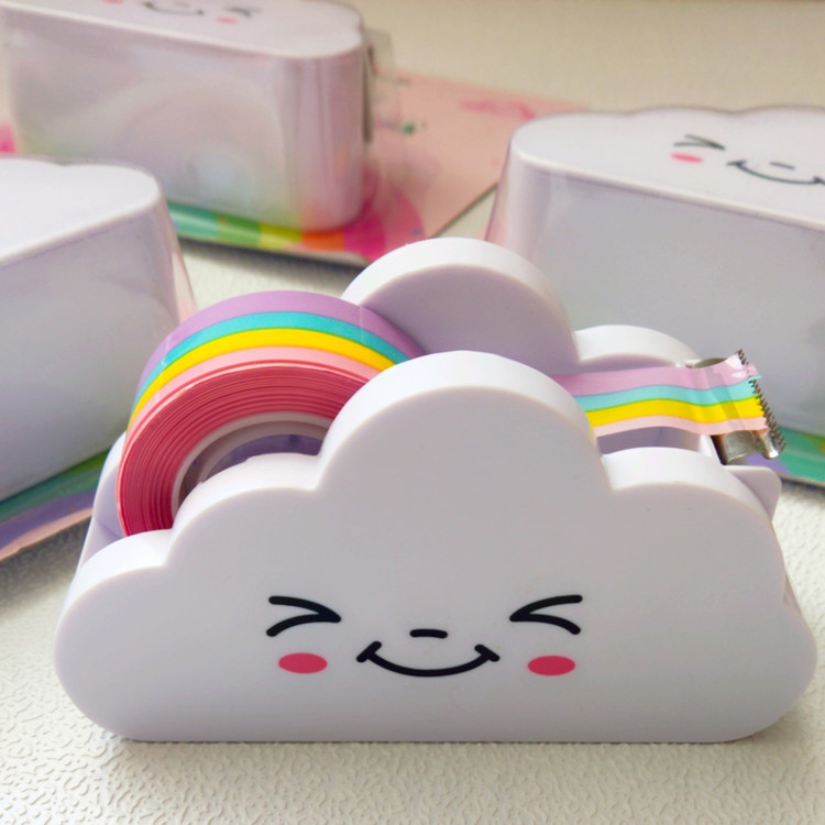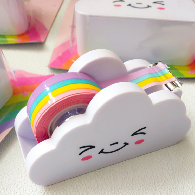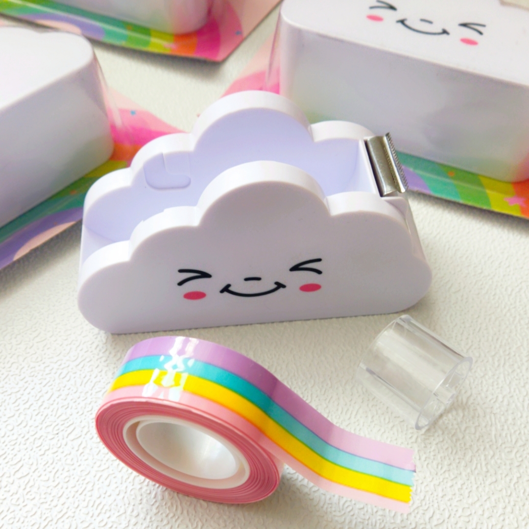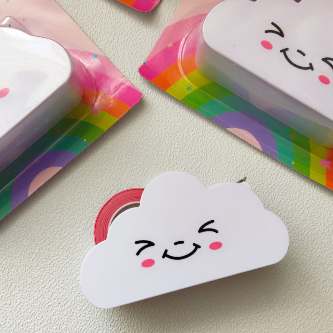 پایه چسب فانتزی طرح ابر خندان همراه با یک عدد چسب فانتزی رنگین کمانی.