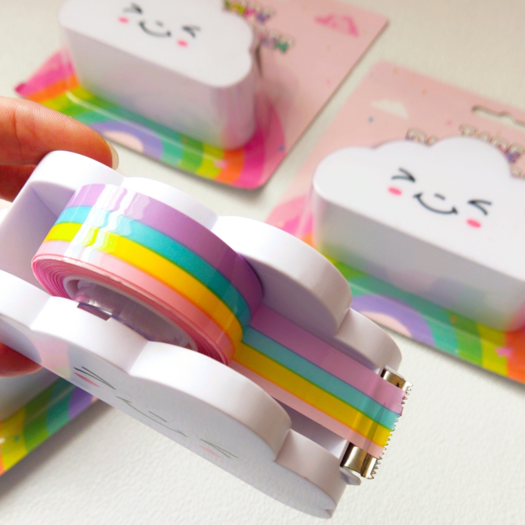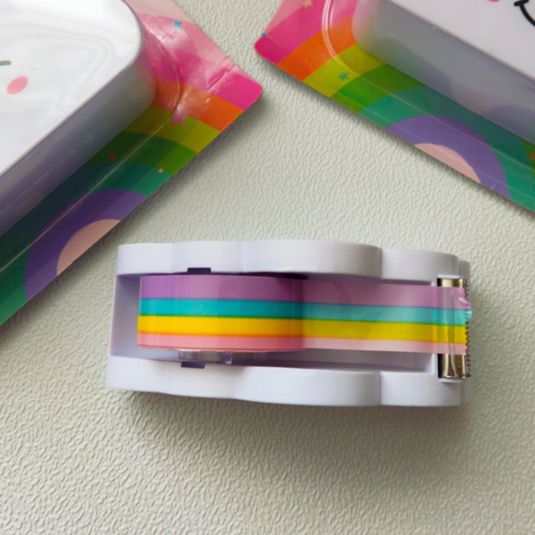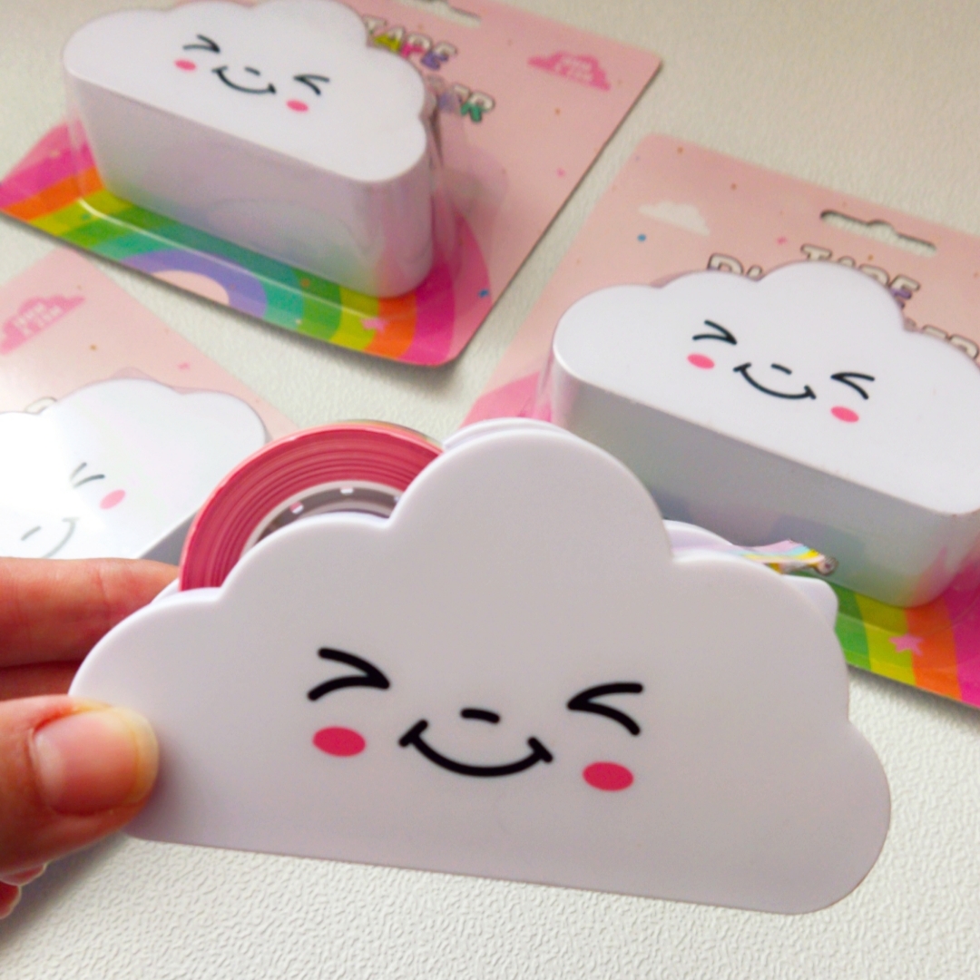 پایه چسب فانتزی طرح ابر خندان همراه با یک عدد چسب فانتزی رنگین کمانی.