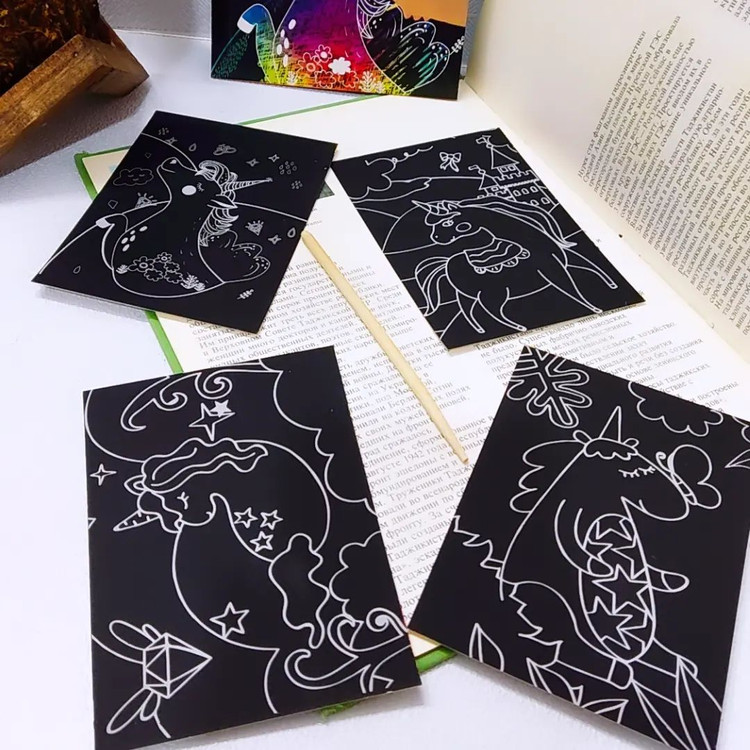 این پکها مقوایی اسکراچ با طرح خام داره یعنی طرحش از قبل کشیده شده و شما باید اون طرح را رنگ آمیزی کنید