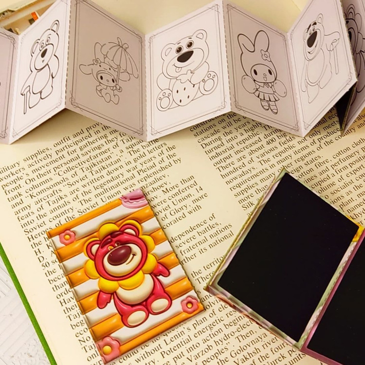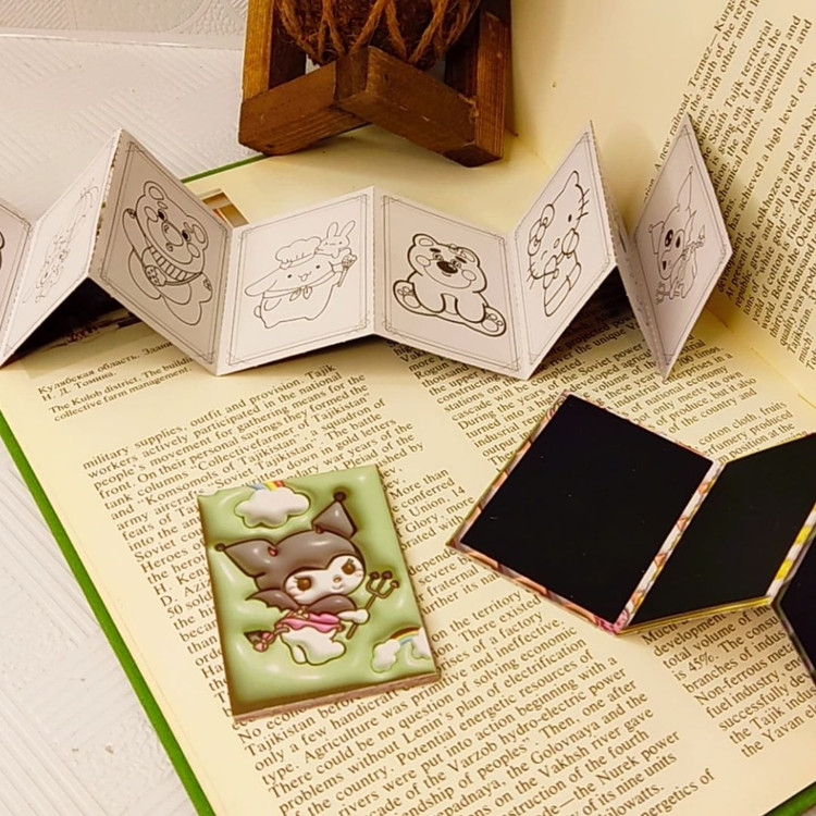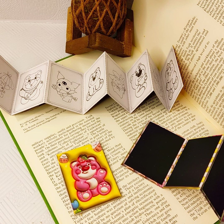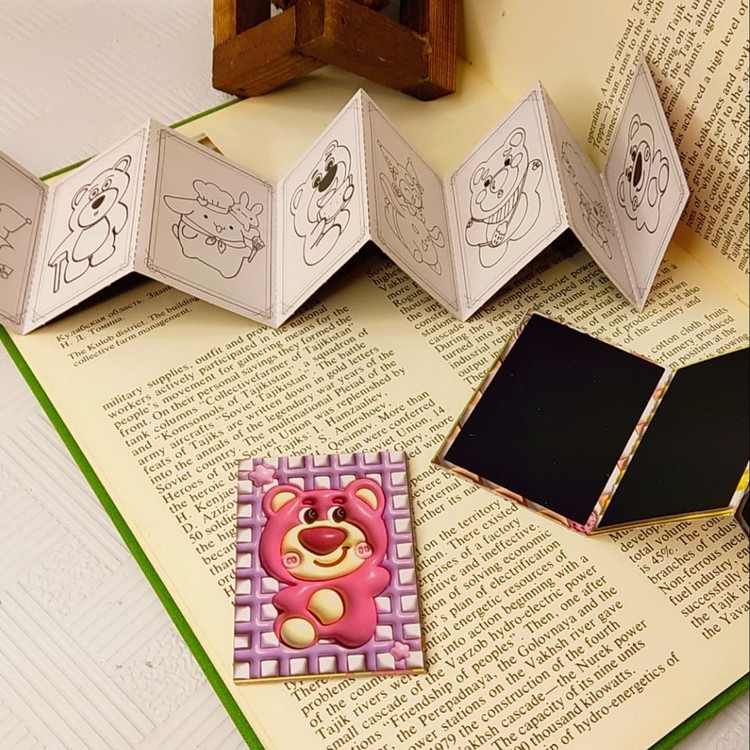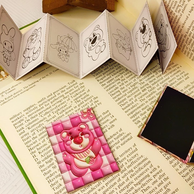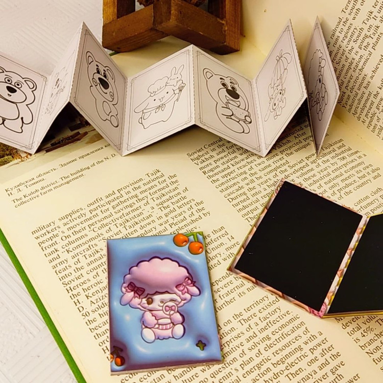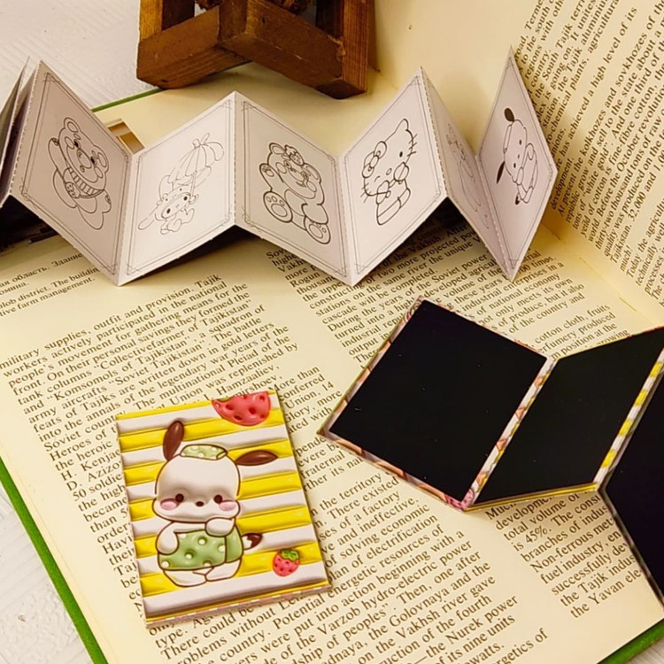 دفترچه رنگ آمیزی+اسکراچ یا برگه زغالی یا جادویی برگه ها به صورت تاشو هستند.یک طرف ۸برگ برای رنگ آمیزی داره و پشت آنها ۷برگ زغالی نقلی هستند ابعاد ۵×۷ سامتی متر