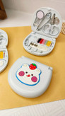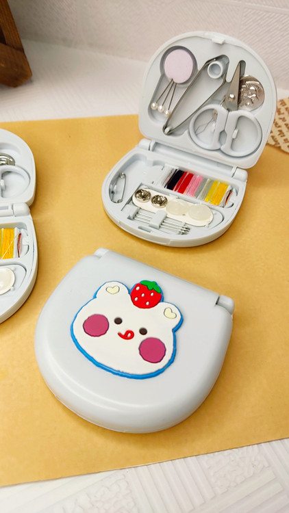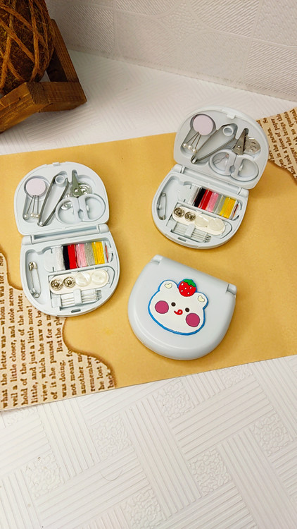 این کیت شامل چند رنگ نخ ،سوزن خیاطی ،سنجاق ،سوزن ته گرد ،پنس ،قیچی، دکمه معمولی ،دکمه جفتی ،سوزن نخ کن