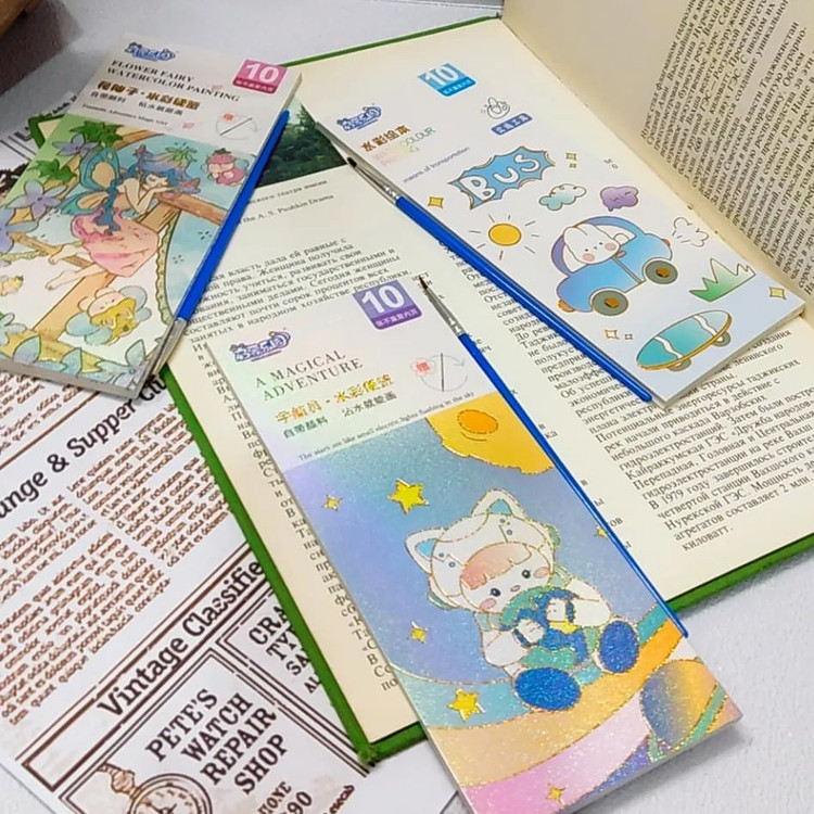 دفترچه های آبرنگی خیلی پرطرفداره چون کثیف کاری آبرنگ را نداره میتونه همیشه توی کیفتون باشه و هر جا دوست داشتید ازش استفاده کنید این مدل نسبت به مدل های قبلی رنگهای ملایم تری داره کمرنگ تر است اما رنگ آمیزی باهاش یکنواخت تر میشه هر برگ را میتونید جدا کنید و به عنوان کارت پستال،بوک مارک و... استفاده کنید